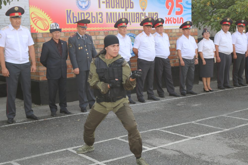 Маалыматка караганда, студенттерге милициянын азыркы учурдагы жаңы мыйзамдар менен иштөө тартиби жана кыргыз милициясынын тарыхы тууралуу маалымат берилди. Милиция кызматкерлери тарабынан “Машыгуулардан ыкма жана кылмышкерди кармоо”, “Массалык баш-аламандыкка каршы аракеттер”, “Баңги затты аныктоо жана качып бараткан кылмышкерди кызматтык иттердин жардамы менен кууп кармоо” боюнча көргөзмө-көнүгүүлөрү аткарылып, №704 Ички Аскер бөлүгүнүн жоокерлери тарабынан атайын даярдалган саптык көрүнүш көрсөтүлдү.
