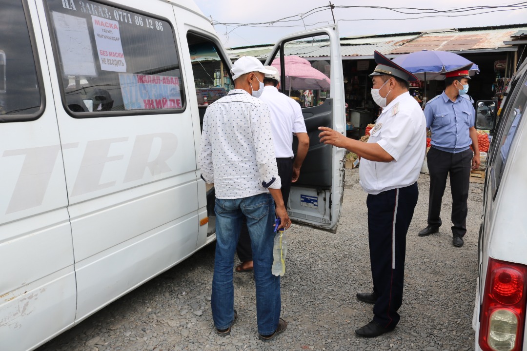 Милиция кызматкерлери автоунаалардагы санитардык эрежелердин сакталышын көзөмөлгө алышты. Коомдук транспорт жана такси айдоочуларына жарандарды унаага салууда бет кабы жокторду чыгарбоо керектиги айтылды. Өздөрү жеке гигиенаны сактоо менен антисептикалык каражаттарды колдонуп, унаа салонуна көп адам салбоо зарылдыгы эскертилди.