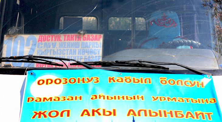 Муниципалитеттен белгилешкендей, акысыз каттам жүргүзө турган кичи автобустарга "Орозоңуз кабыл болсун. Орозо айынын урматына жол акы алынбайт” деген жазуу илинген.