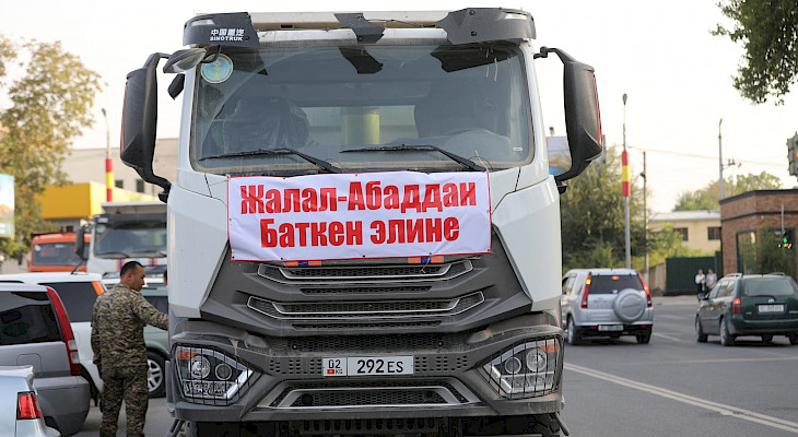 Жалал-Абад шаардык мэриясынан билдиришкендей, жергиликтүү бийлик жана шаардагы ишкерлер тарабынан 5 тонна өсүмдүк майы, 5 тонна ун, 3 тонна гүрүч, 3 тонна макарон, 2 тонна кумшекер, 4 миң 640 даана нан, 400 блок ичүүчү суу жыйналып, ӨКМдин жардамында Баткен облусуна жөнөтүлдү.
