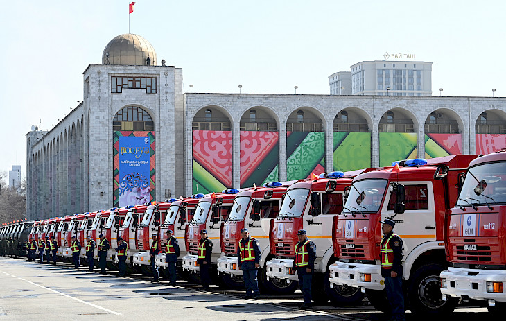 Шамырканов Россиядан дагы кошумча 40 даана өрт өчүрүүчү унаа каралганын айтып, анын 10у кампага киргенин белгиледи.