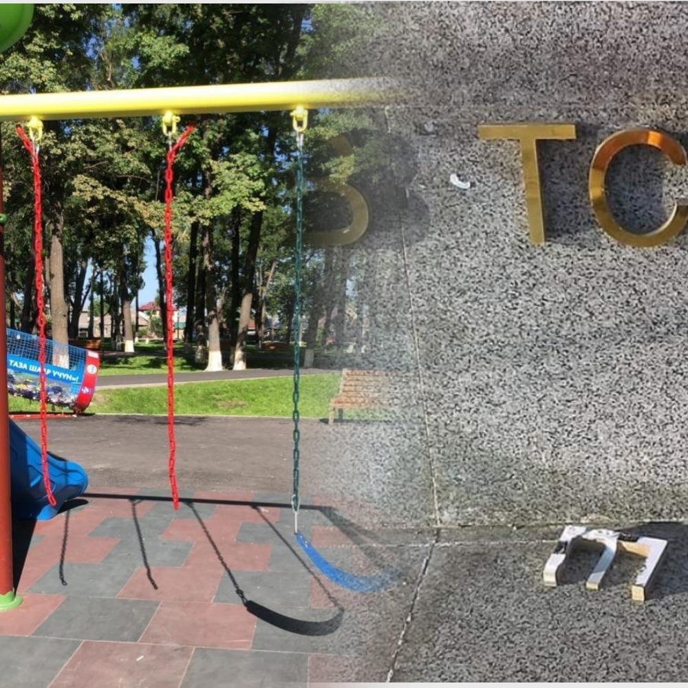 "Тамгалар атайын бир курч курал менен чыгарылган. Алгач биз ага габбро плиталарын колдонууну пландаганбыз, бирок бул таштар менен тамгалар даяр болгонго чейин убактылуу тамгалар коюлуп турган болчу. Тамгаларды чыгарып кеткенден тышкары балдар аянтчасындагы селкинчектин отургучун, жаңы коюлган таштанды урналарды да көтөрүп кетишкен. Ал эми жалаң бөтөлкө салуу үчүн орнотулган таштанды бакка жалпы эле аралашкан таштандылар салынган", - деп айтылат маалыматта.