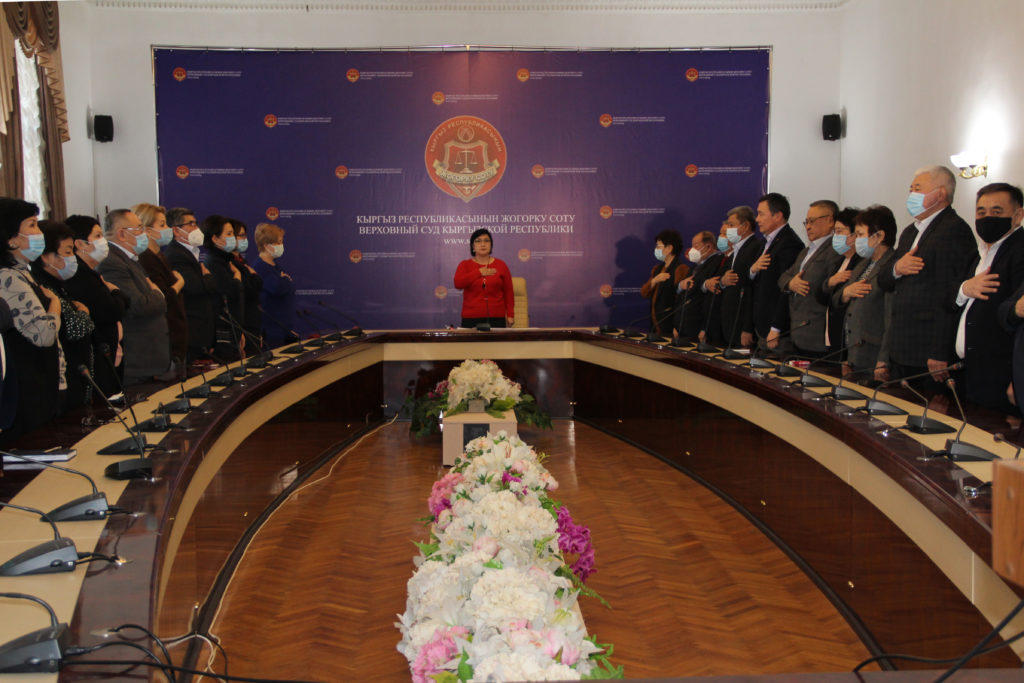 "Жогорку Соттун төрайымынын милдетин аткаруучу Нургүл Бакирова жаңы дайындалган судьяларды куттуктап, берген антка бек турууга чакырды", - деп жазылат маалыматта.