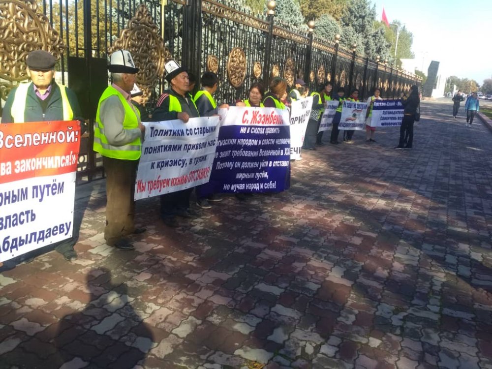 12-октябрда, Жогорку Кеңештин имаратынын алдында азыркы президент Сооронбай Жээнбековдун отставкасын талап кылган митинг өткөн. Бул акцияга 20га жакын адам, негизинен аялдар катышкан.