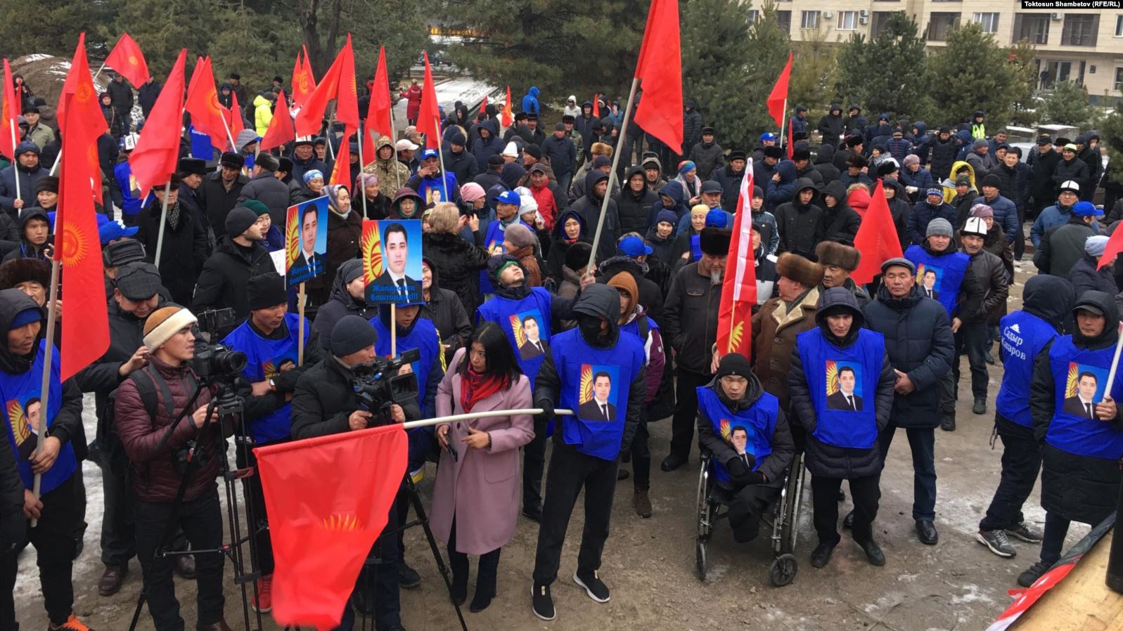 Бүгүн, 15-октябрда Ысык-Көл мейманканасынын алдында Садыр Жапаровдун тарапташтары митингге чогулушту.