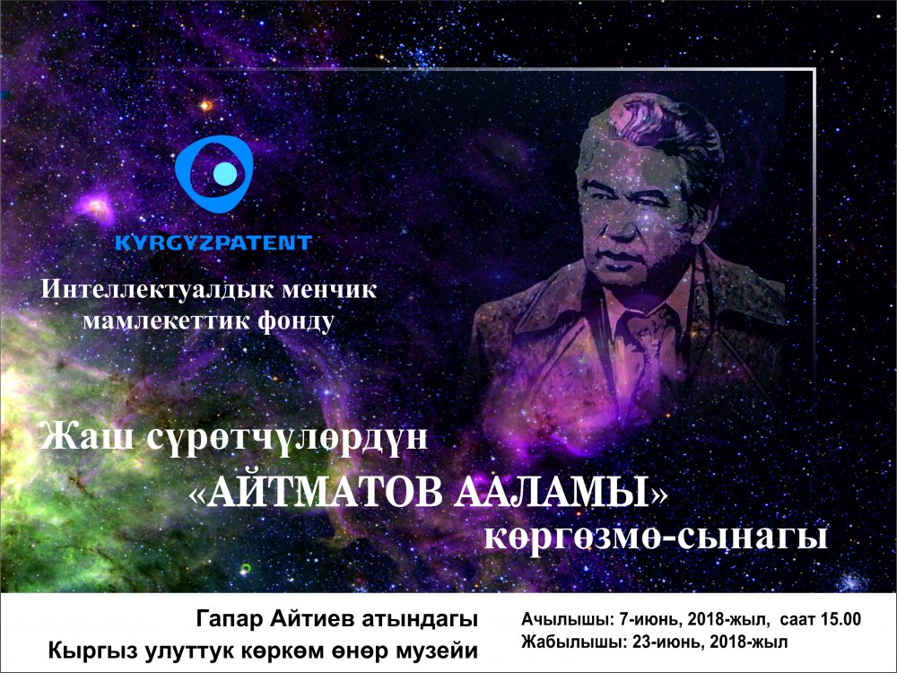 2018-жылдын 8-июнь күнү саат 11:00дөГапар Айтиев атындагы Кыргыз улуттук сүрөт өнөр музейинде Ч. Айтматовдун 90 жылдык мааракесине карата жаш сүрөтчүлөрдүн “Айтматов ааламы"көргөзмө-сынагы өз эшигин ачат. Бул тууралуу маалыматты Кыргызпатенттин басма сөзкатчысы билдирди.