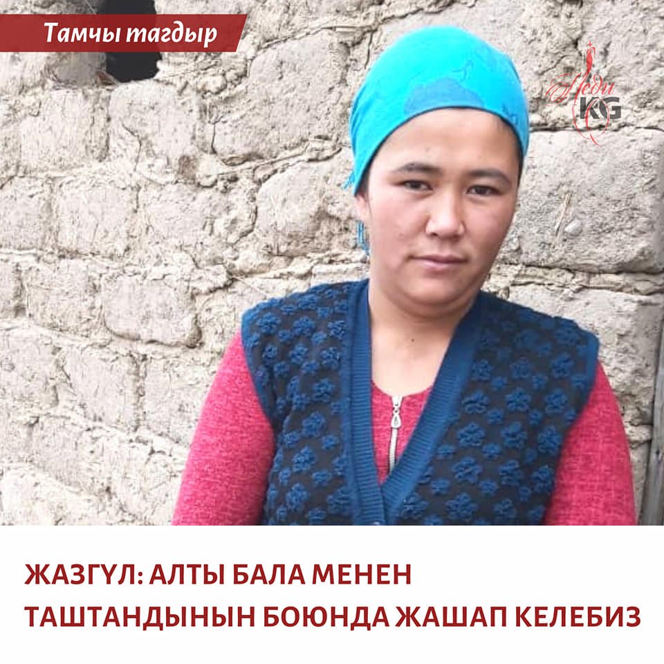 Жаштайынан кыйынчылыктар менен күн кечирип келе жаткан Жазгүл алты баланын энеси. Ушул заманда тамга тааныбыган эне балдарынын сабаттуу болушун абдан кыялданат. Тилекке каршы, кыялдары канчалык бийик экенине карабай жашоосу таштандынын боюнда, булганган абага уугуп ѳтүп жатат, - деп жазып чыкты "Леди.kg" гезити.