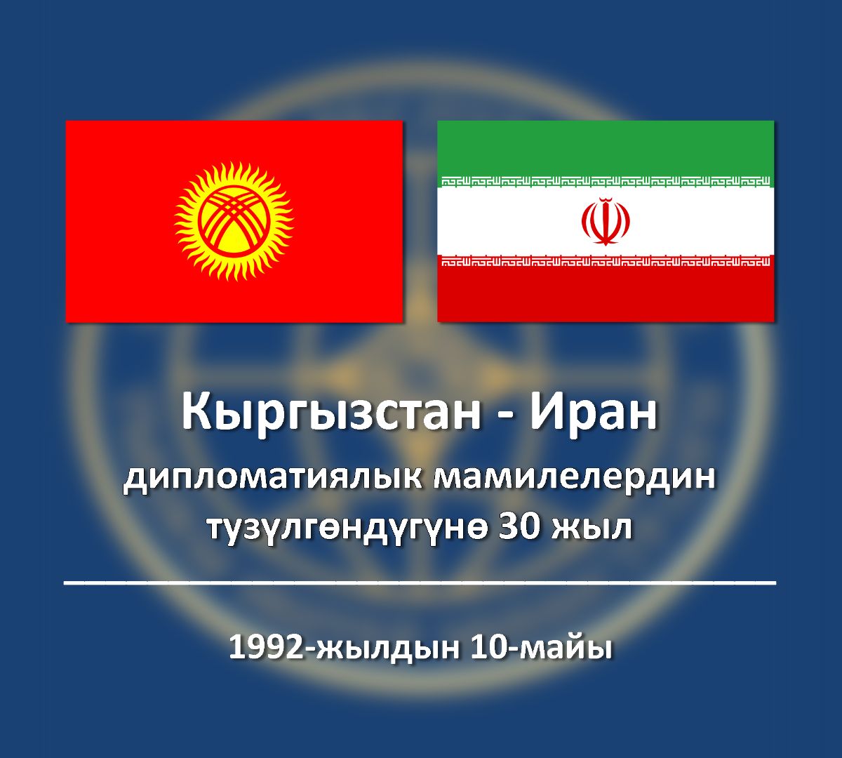 10-майда тышкы иштер министри Жээнбек Кулубаев менен Иран Ислам Республикасынын тышкы иштер министри Амир Хоссейн Абдоллахиян мамлекеттер ортосунда дипломатиялык мамилелердин түзүлгөндүгүнүн 30 жылдыгына карата куттуктоо каттары менен алмашты. Кулубаевдин куттуктоосунда мындай деп айтылат: