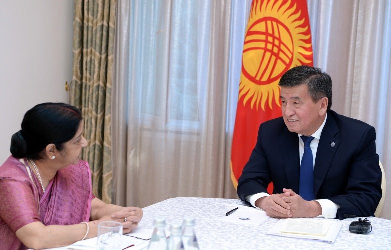 Мамлекет башчысы Сушма Свараджды жылуу кабыл алып, Кыргызстан Индия менен достук мамилелерди өнүктүрүүнү колдоорун белгиледи.