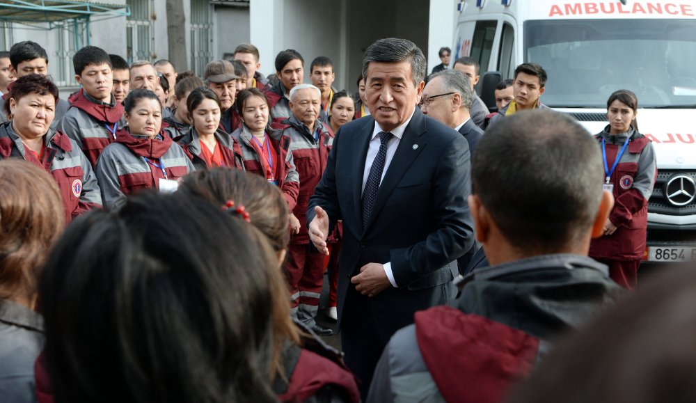 Мамлекет башчысы медициналык мекемелердин жамааттарына ыраазычылык билдирди. Калкка медициналык жардам көрсөтүү, адамдардын өмүрүн куткаруу эң мыкты кесип экенин өзгөчө белгилеп, кургак учукка каршы кызматтын жана тез жардам станцияларынын жумушчуларына айлык акыларды жогорулатуу мүмкүнчүлүктөрү каралып жатканын кошумчалады.