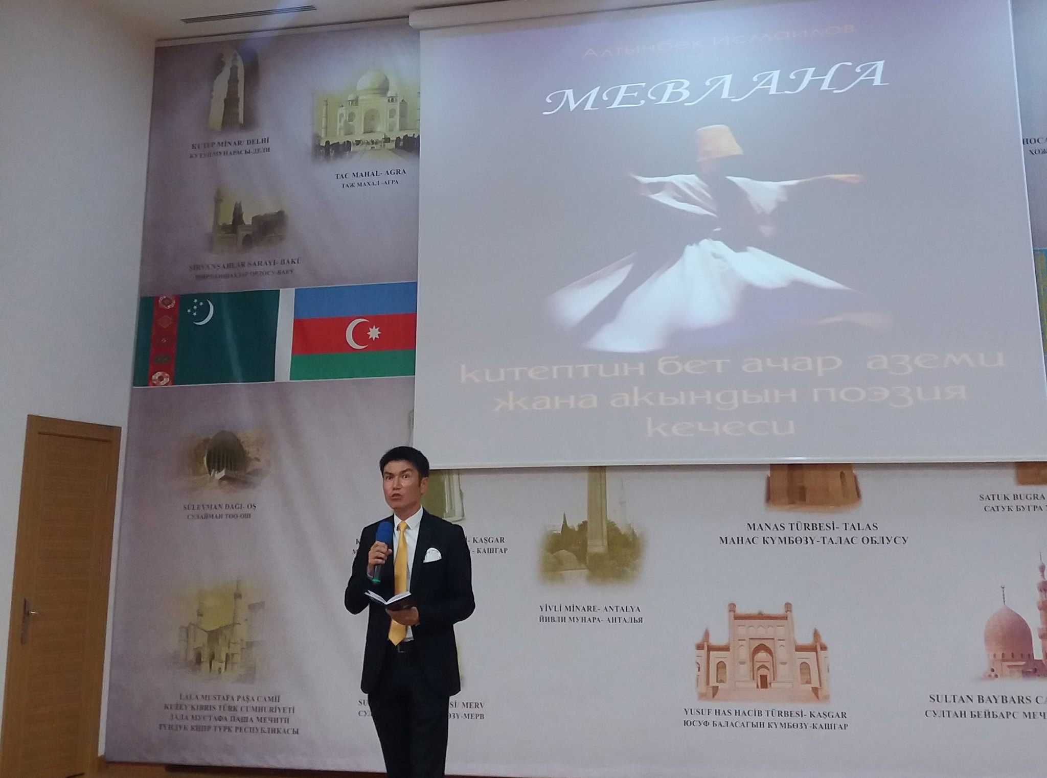 26-майда Кыргыз-Түрк «Манас» университетинде акын, котормочу Алтынбек Исмаиловдун «Мевлана» аттуу китебинин бет ачар аземи жана поэзия кечеси болуп өттү.
