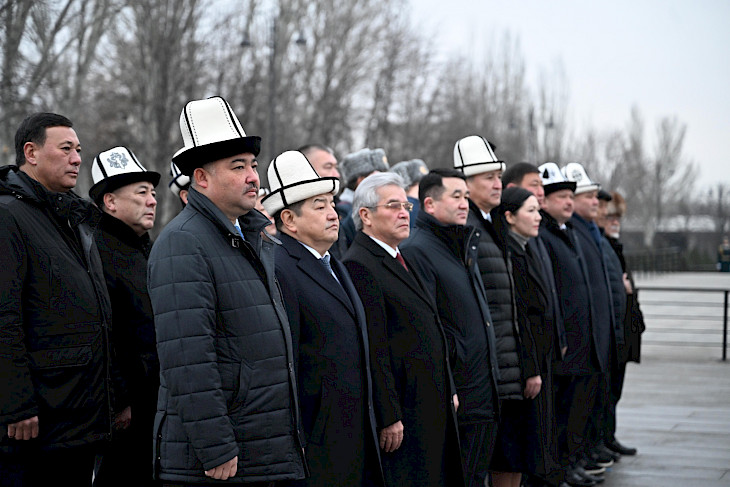 Бүгүн, 8-январда Жогорку Кеңештин төрагасы Нурланбек Шакиев баштаган депутаттар, Министрлер кабинетинин төрагасы Акылбек Жапаров баштаган жетекчилер, мамлекеттик катчы Сүйүнбек Касмамбетов «Ала-Тоо» аянтында мамлекеттик тууну көтөрүү аземине катышып, желек илинген болчу.