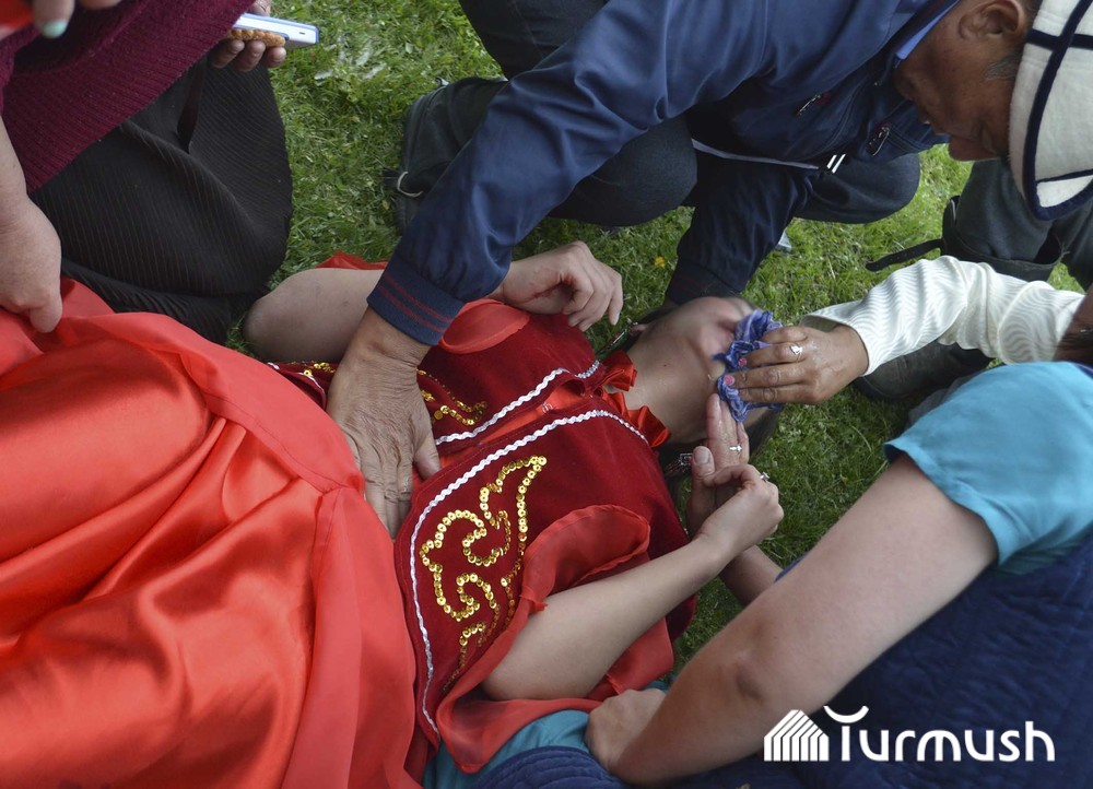 Маалым болгондой, дарыгерлер чакырылып, аттан жыгылган кызга биринчи медициналык жардам көрсөтүлдү. Алдын ала маалыматтарга караганда, кыз Жерге-Тал айылынын тургуну болгон.