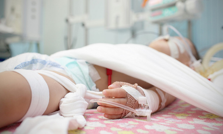 Сол колунун алакандары күйүп, оң жамбашынан жаракат алган наристе азыр оор абалда ооруканада.