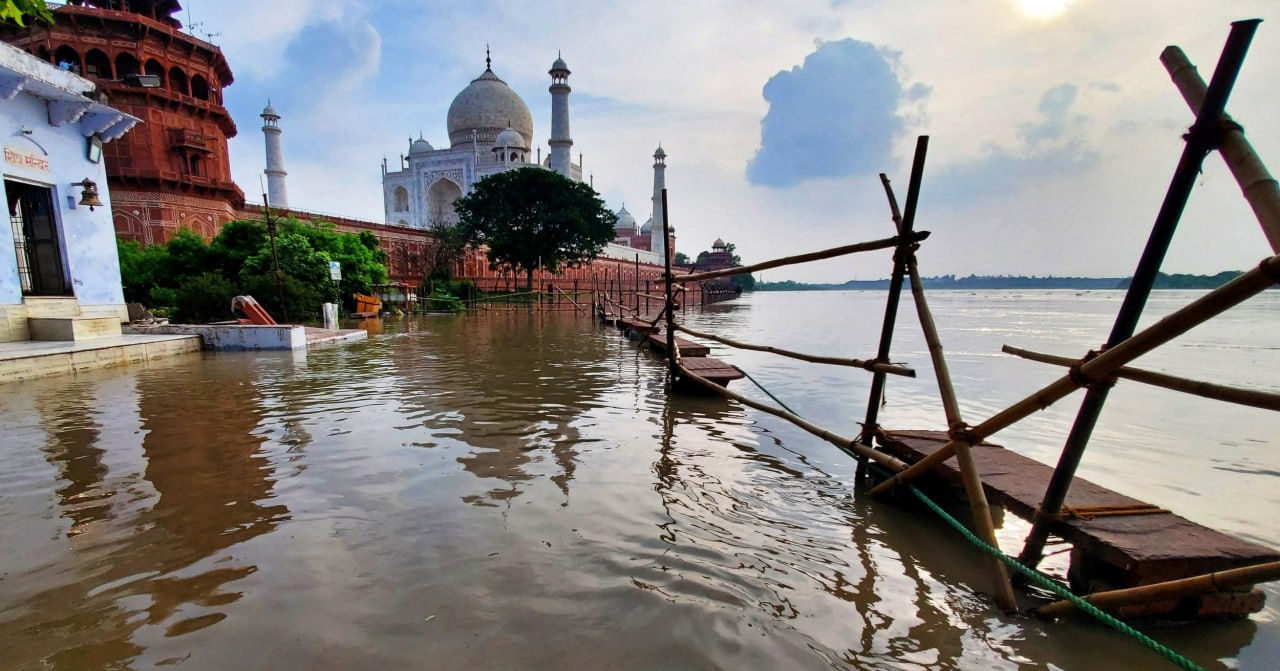 Суу буга чейин Таж-Махалдын дарыянын жээгинде жайгашкан бакчасын каптаган. Бул 45 жылдан бери биринчи жолу болду. Суу күмбөздүн жер төлөсүнө чейин кирип кетиши мүмкүн, бул 17-кылымдын ортосунда тургузулган имараттын пайдубалына кооптуу. Дарыянын ташкыны азыр Аградагы башка тарыхый эстеликтерге да коркунуч жаратууда.