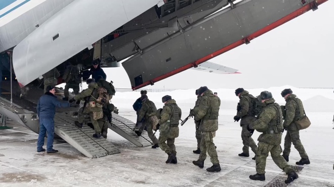 Буга байланыштуу 6-январга караган түнү казак президенти Касым-Жомарт Токаев "террордук коркунучту жөнгө салуу" деген жүйө менен ЖККУдан жардам сураган. 6-январда Орусиянын аскерлеринин алгачкы бөлүгү Казакстанга келип түшсө, 7-январда уюмга кирген Армения, Беларус, Тажикстан жана Кыргызстандын тынчтык орнотуу күчтөрү барган.