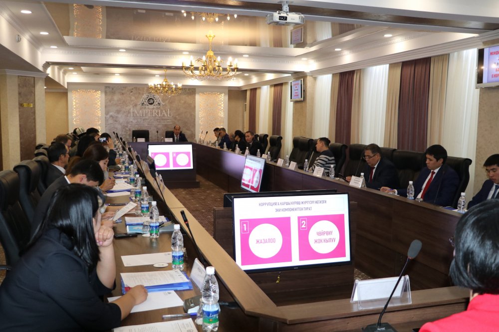 Иш чара "Коррупция көйгөйлөрүн жана кылмыш жолу менен алынган кирешелерди адалдоону изилдөө Борбор Азия институту" коомдук фонду, Билим берүү жана илим министрлиги тарабынан уюштурулду.