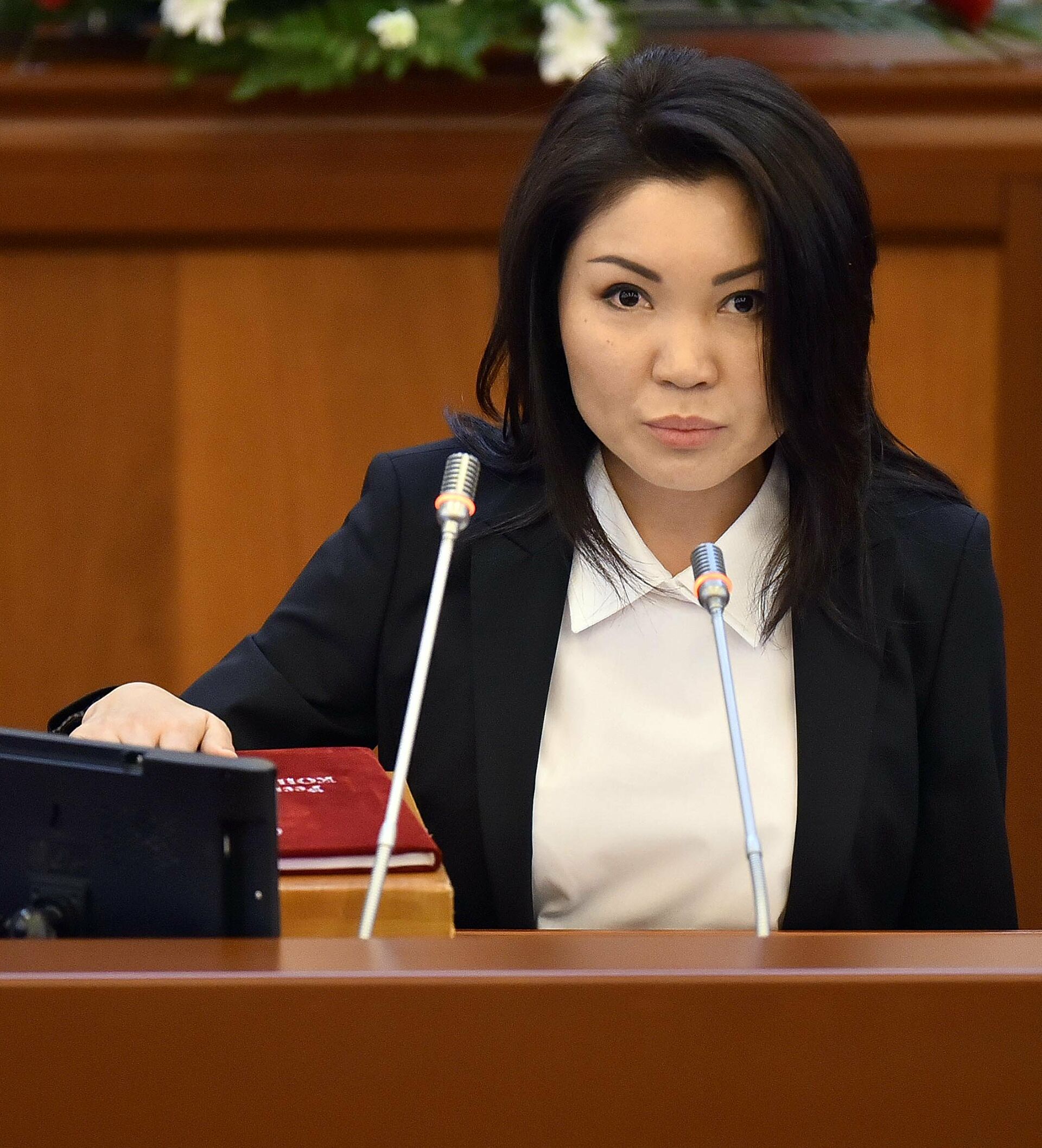 "Жогорку Кеңештин депутатынын ыйгарым укуктарын аткарууга киришип жатып Кыргыз Республикасына берилгенимди билдирип, Конституцияны жана мыйзамды сактоого ант берем", - деди Сурабалдиева.