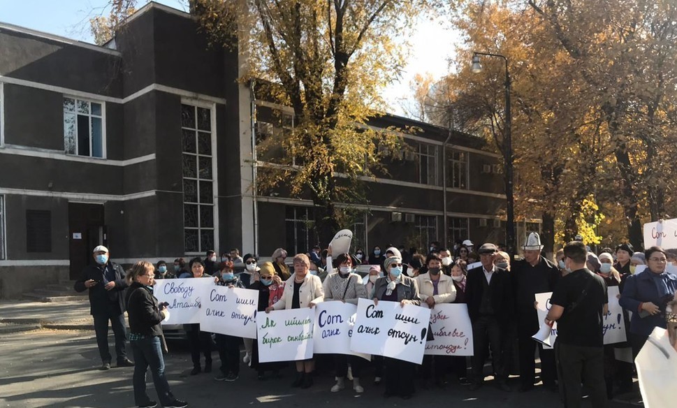 Бүгүн, 21-октябрда Жогорку Соттун имаратынын алдына мурунку президент Алмазбек Атамбаевдин тарапташтары чогулду.