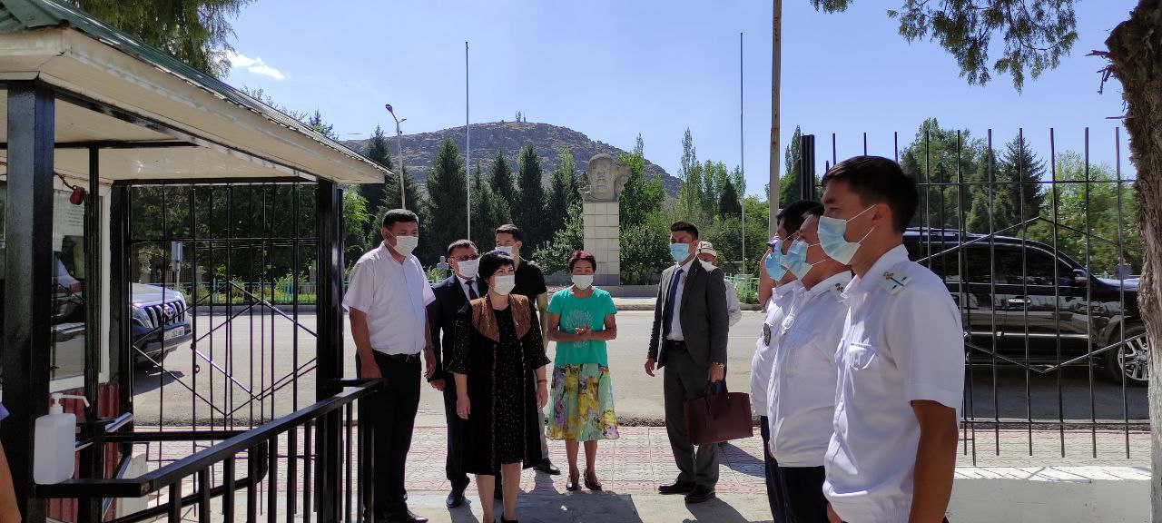 Маалыматка ылайык, Аксы райондук сотунун төрагасы Манасбек Дарманкулов төрайымды тосуп алып, соттун имараты жана ишмердүүлүгү менен тааныштырды.