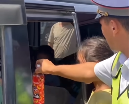 Чүй облусунун жол тескөөчүлөрү тарабынан Төө-Ашууда жолдун ачылышын күтүп жаткан жарандарга суусундук таратылууда. Бул тууралуу ЖКККБдан билдиришти.