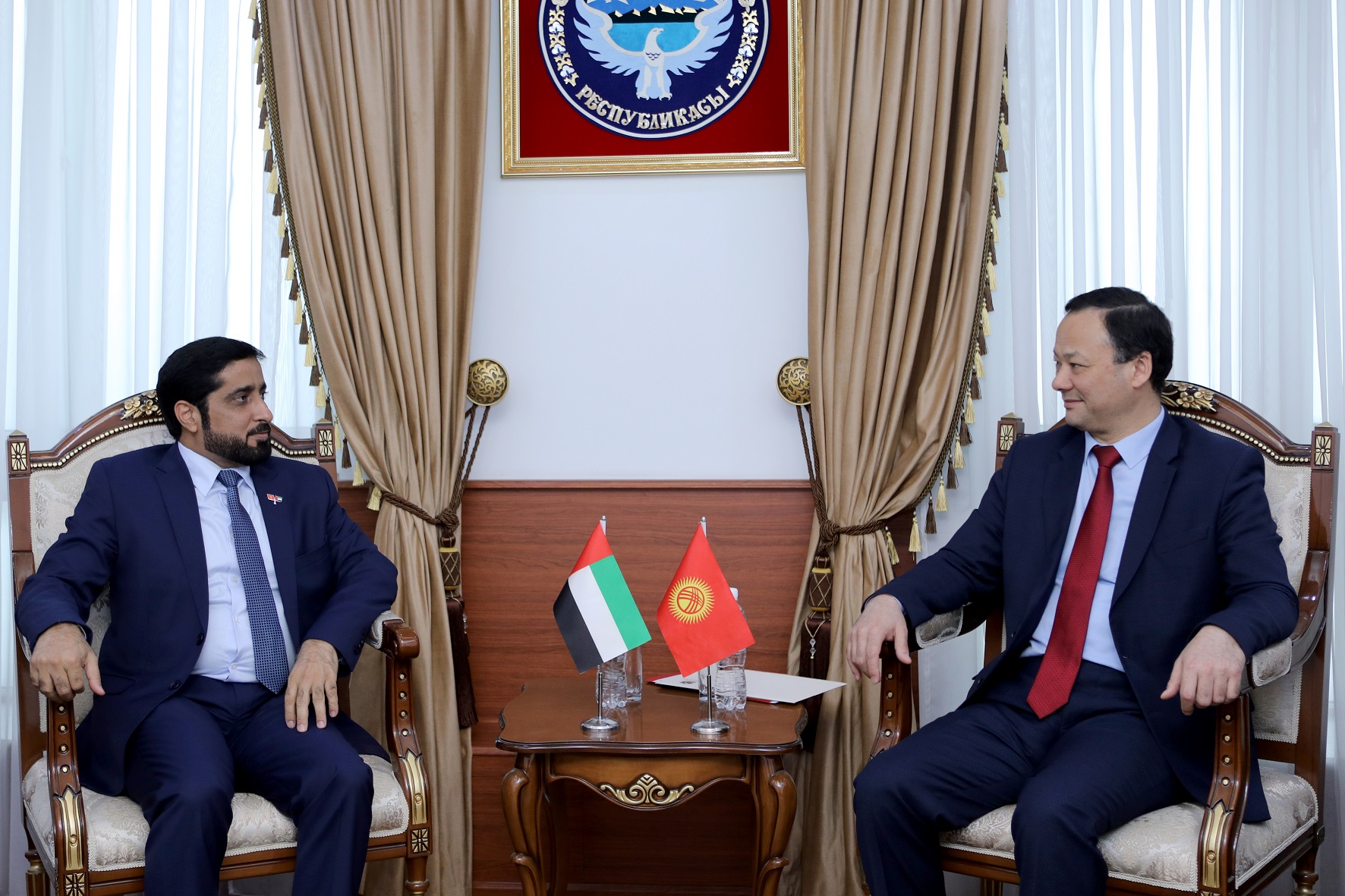 Бириккен Араб Эмираттарынын элчиси өз кезегинде, кыргыз-эмираттык эки тараптуу кызматташтыкты өнүктүрүү үчүн бардык күч-аракетин жумшоого даяр экендигин билдирип, банктык байланыштарды түзүүгө, ошондой эле БАЭ тарабынан каржыланган курулуш долбоорлорун - Токмоктогу Ислам академиясын жана Нарын жана Баткен облустарындагы калктын аялуу топтору үчүн социалдык турак жайларды тез арада ишке ашырууга кызыкдар экендигин билдирди.