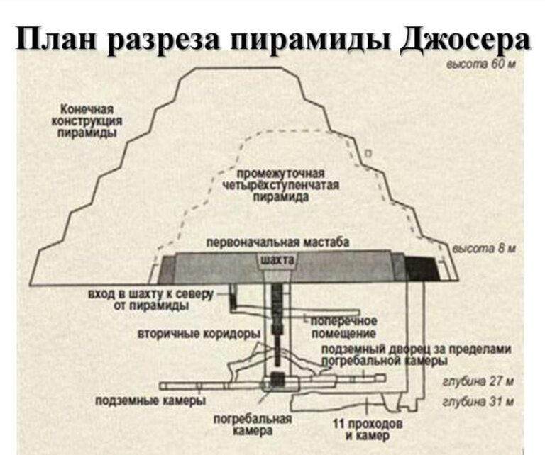 Жосер пирамидасынын эң таң калычтуу жери – 30 метр тереңдиктеги тик шахта. Анын түбүндө ири таш блоктордон курулган көмүү камерасы жайгашкан. Мындай ыкма Египетте сейрек колдонулган. Айрым окумуштуулар муну каракчылардан коргонуу десе, башкалары анын белгисиз символдук же техникалык мааниси бар деп эсептешет.