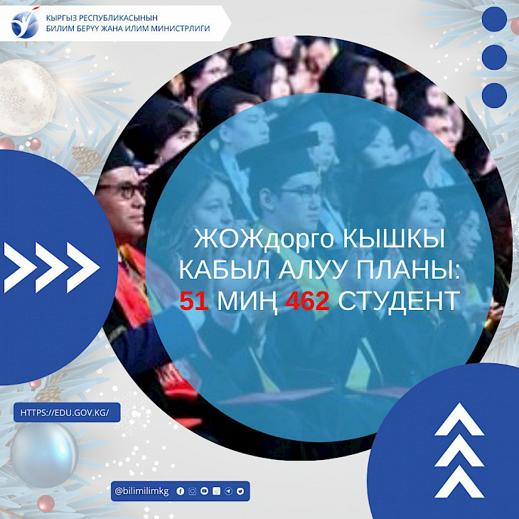 Жогорку окуу жайлары 2022-2023-окуу жылына кышкы кабыл алуу үчүн 51 мин 462 студентти кабыл алууну пландаштырууда. Бул тууралуу Билим берүү жана илим министрлигинин басма сөз кызматынан билдиришти.