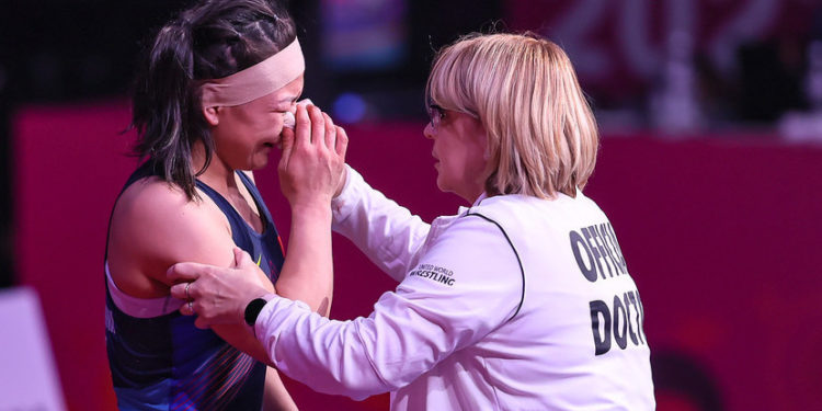 Балбан Мээрим Жуманазарова 11-апрелде Казакстанда өтүп жаткан Азия чемпиондугунда коло медаль үчүн күрөшүп, беттеште мурдунан жаракат алып, күрөштү уланталбай калган.