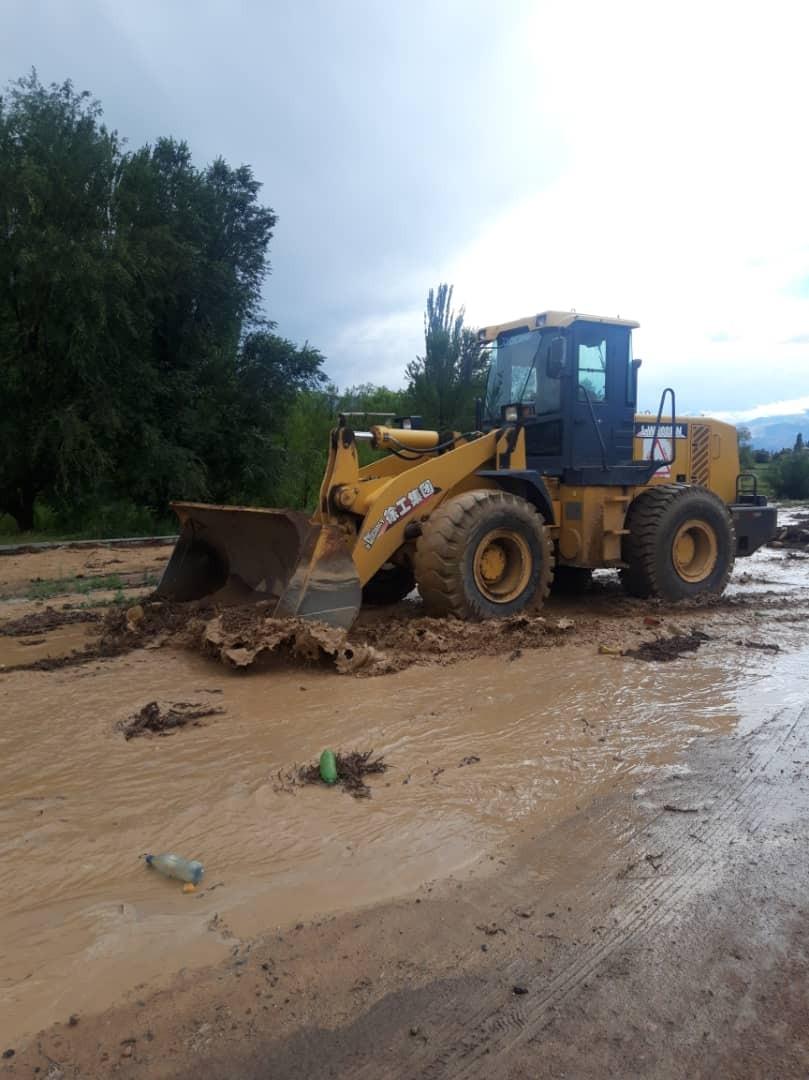 Жерине Жумгал району боюнча ӨКБнын башчысы, Жумгал райондук №43 Өрт-куткаруу бөлүмдөн 20 куткаруучу, жергиликтүү тургундардан 50 адам, №21 ЖТИден 1 жүктөгүч, айыл аймактан 1 жүктөгүч, 1 эксковатор жана суу чарба башкармалыгынан 1 жүктөгүч тартылган.
