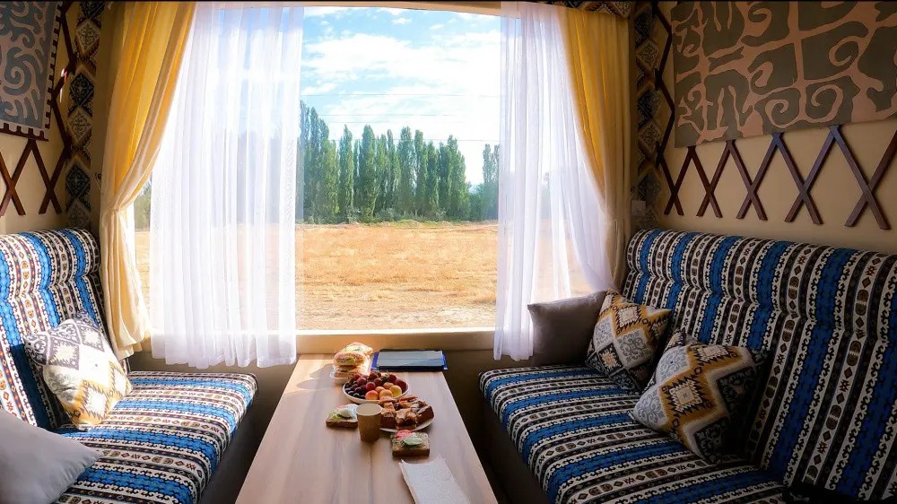 Ошондой эле, ички жасалгасы улуттук стилде кооздолуп, купеге кирген адамдын көңүлүн өзүнө бурбай койбойт.