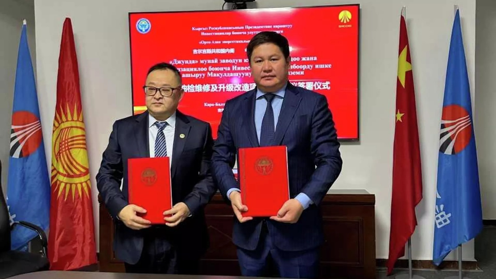 "Жунда" компаниясынын "Чайна петрол" мунай иштетүүчү заводун капиталдык оңдоо жана модернизациялоо боюнча инвестициялык макулдашууга бүгүн, 2-июлда, Кыргызстандын президентине караштуу Улуттук инвестиция агенттигинин (УИА) директору Талантбек Иманов менен "Борбор Азия энергетикалык компаниясы" ЖЧК башкармалыгынын төрагасы Хуан Цян кол койду.