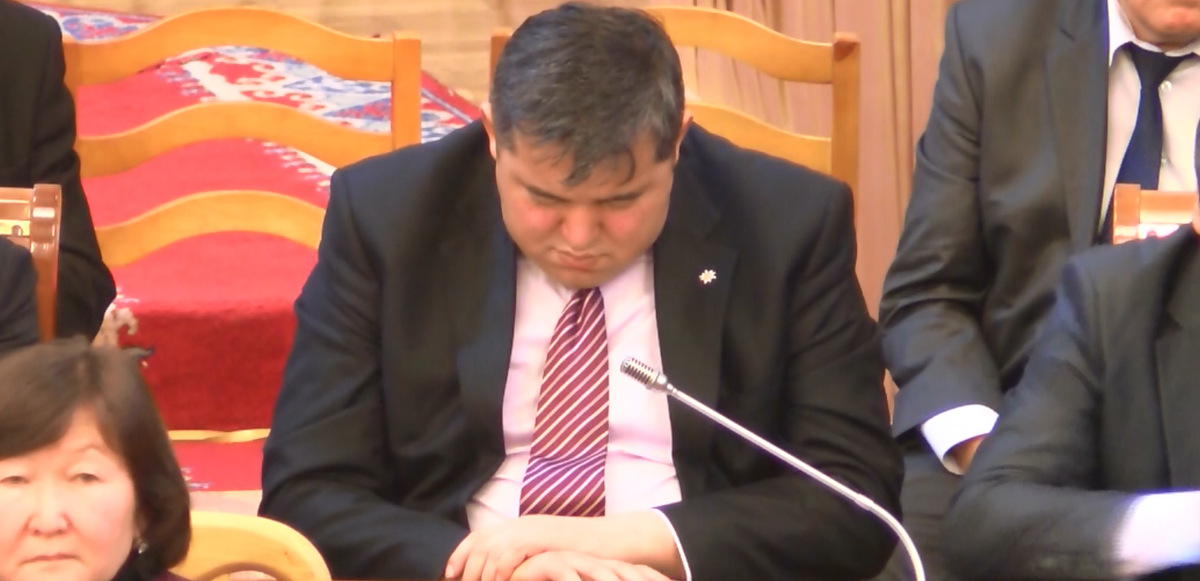 Жыргалбек Турускулов: «Керималиев, эмне уктап атасың?», - деп ЖКнын депутаты Жыргалбек Турускулов парламенттин сессиясында уктап отурган Айыл чарба министринин орун басары Жаныбек Керималиевди ойготту.