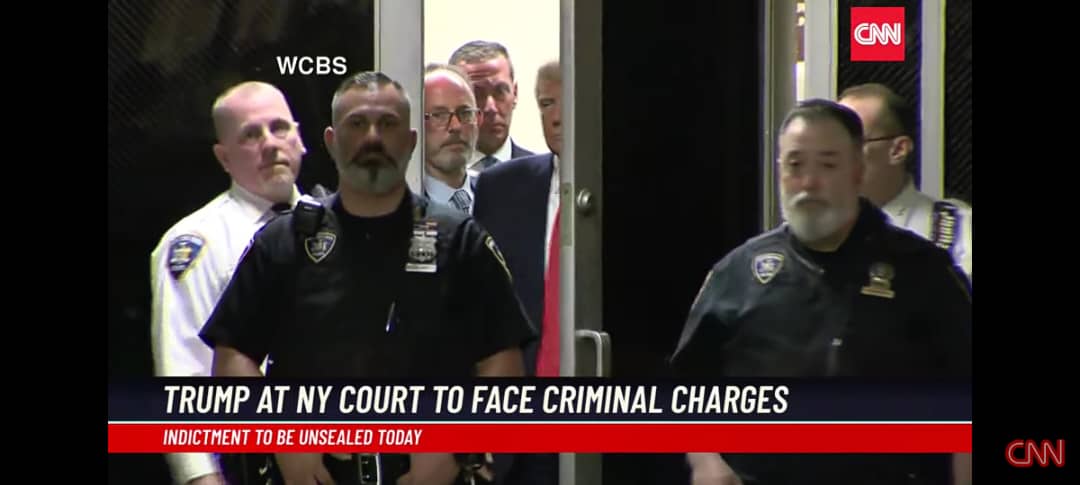 После прибытия в суд Трамп сдался властям и был формально заключен под стражу до предъявления обвинений. Это стандартная процедура в подобных случаях - в момент ареста обычно надевают наручники (и зачитывают права), но для экс-президента сделали исключение. У Трампа также могли взять отпечатки пальцев и сфотографировать для дела.