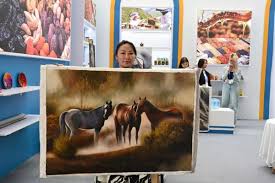 На торгово-инвестиционной ярмарке в Китае 19-летняя кыргызстанка Айгуль Усубалиева представила свою живопись, украшения и платки ручной работы. Об этом сообщили в Министерстве экономики и коммерции.