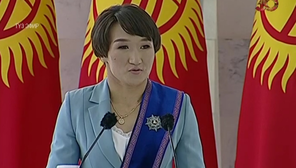 Тыныбекова поблагодарила президента за поддержку и сообщила, что посвящает победу 30-летию независимости Кыргызстана.