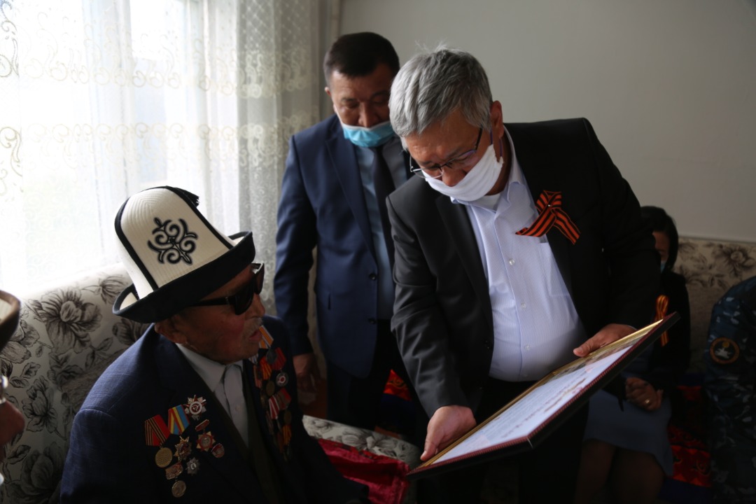 В честь празднования 75-летия Победы в Великой Отечественной войне полномочный представитель Правительства КР в Таласской области Марат Мураталиев и генеральный директор ОсОО «Альянс Алтын» Шайлообек Таиров поздравили ветеранов, проживающих в Кара-Бууринском, Бакай-Атинском, Таласском, Манасском районах и городе Талас.