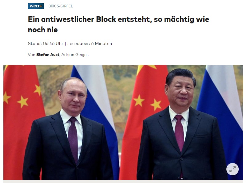 Антизападная коалиция во главе с Россией и Китаем становится всё более могущественной, пишет немецкое издание Die Welt