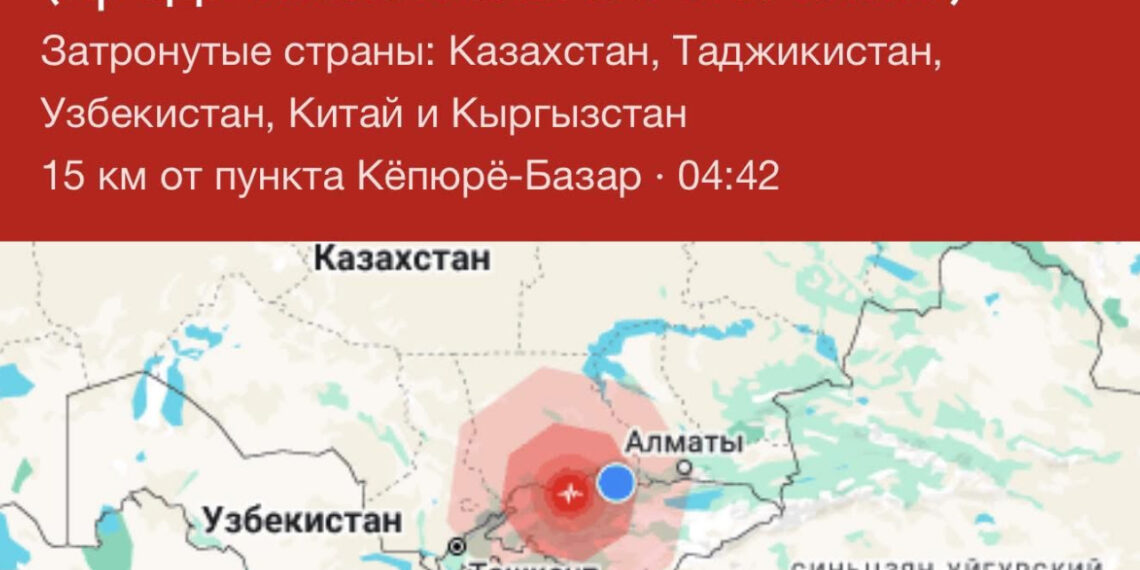 В населенных пунктах КР интенсивность землетрясения составила: в селе Копуро-Базар 5 баллов, в Кара-Балте и Бишкеке около 4-х баллов.