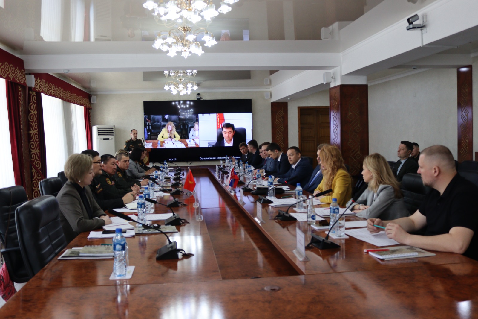 Сегодня, 3 апреля 2025 года, в конференц-зале Центрального аппарата Министерства обороны КР, прошла встреча Министра обороны Кыргызской Республики генерал-лейтенанта Бактыбека Бекболотова с делегацией организационного комитета Движения «Победа 9/45» по подготовке и празднования 80-летия Победы в Великой Отечественной войне 1941 – 1945 годов во главе с Борисом Чернышовым – Председателем Организационного комитета патриотического движения «Победа 9/45», заместителем председателя Государственной Думы Федерального Собрания РФ.