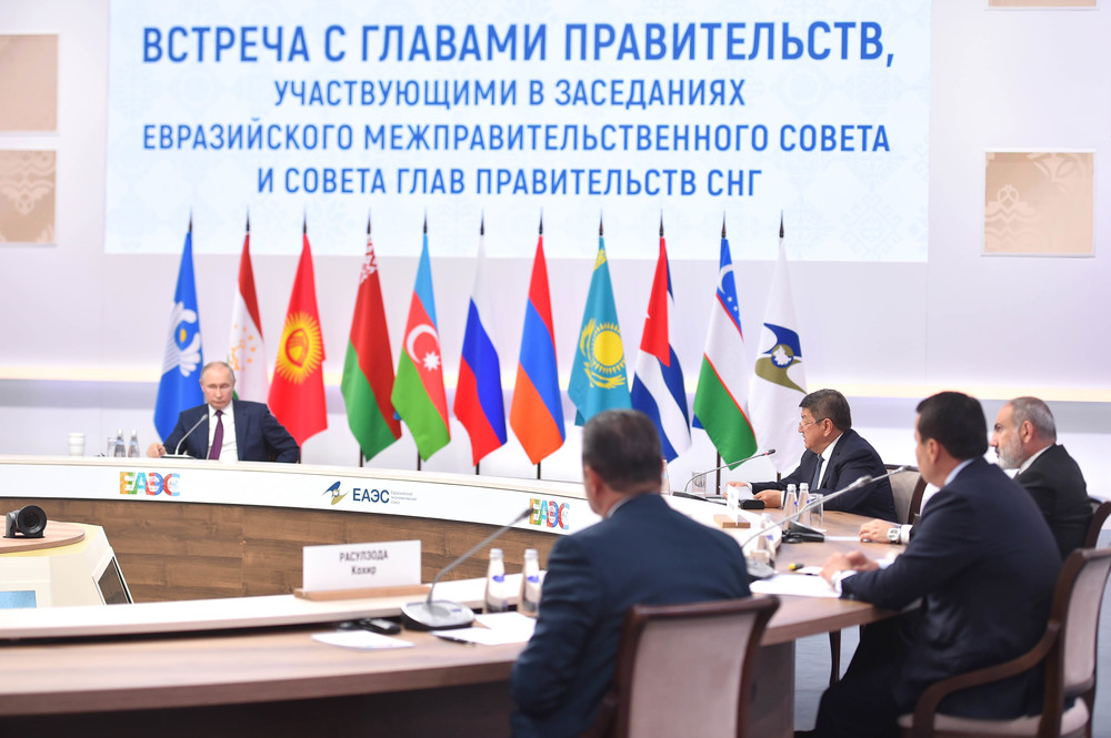 В свою очередь, Путин отметил необходимость дальнейшего расширения торговых связей и повышении вовлеченности экономик стран СНГ и ЕАЭС. «Необходимо энергичнее наращивать промышленную кооперацию, создавать новые совместные производства, в том числе под общей торговой маркой «Сделано в ЕАЭС»»,- отметил Путин.
