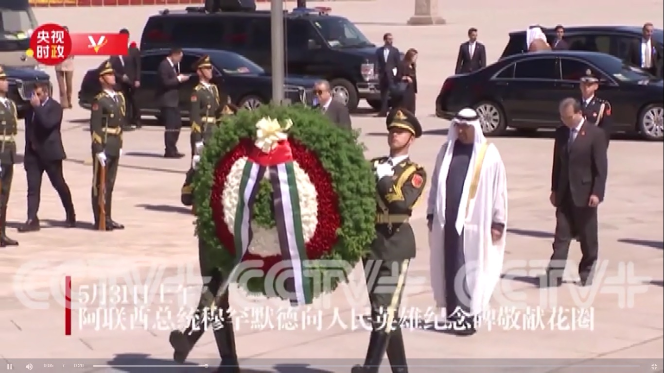Президент ОАЭ Мухаммед бен Заид Аль Нахайян сегодня, 31 мая, возложил венок к Памятнику народным героям на площади Тяньаньмэнь в центре Пекина. Об этом агентству "NazarNews" сообщает китайское агентство "CCTV-plus".