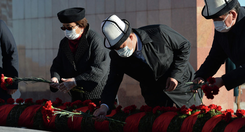 После минуты молчания на площади Победы дан залп и прозвучал гимн Кыргызской Республики.
