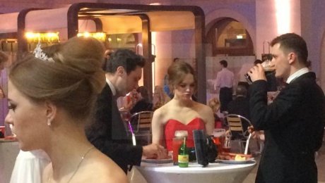 Девушка пришла на благотворительное мероприятие в ярком красном платье без бретелей. Компанию ей составлял оператор. Возможно, девушка хотела снять ролик для своего блога. Судя по видео, кавалеры опасались танцевать с Дианой.
