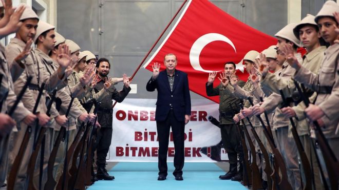 5 марта на митинге в Стамбуле Реджеп Эрдоган был встречен своими молодыми сторонниками, одетыми в военную униформу