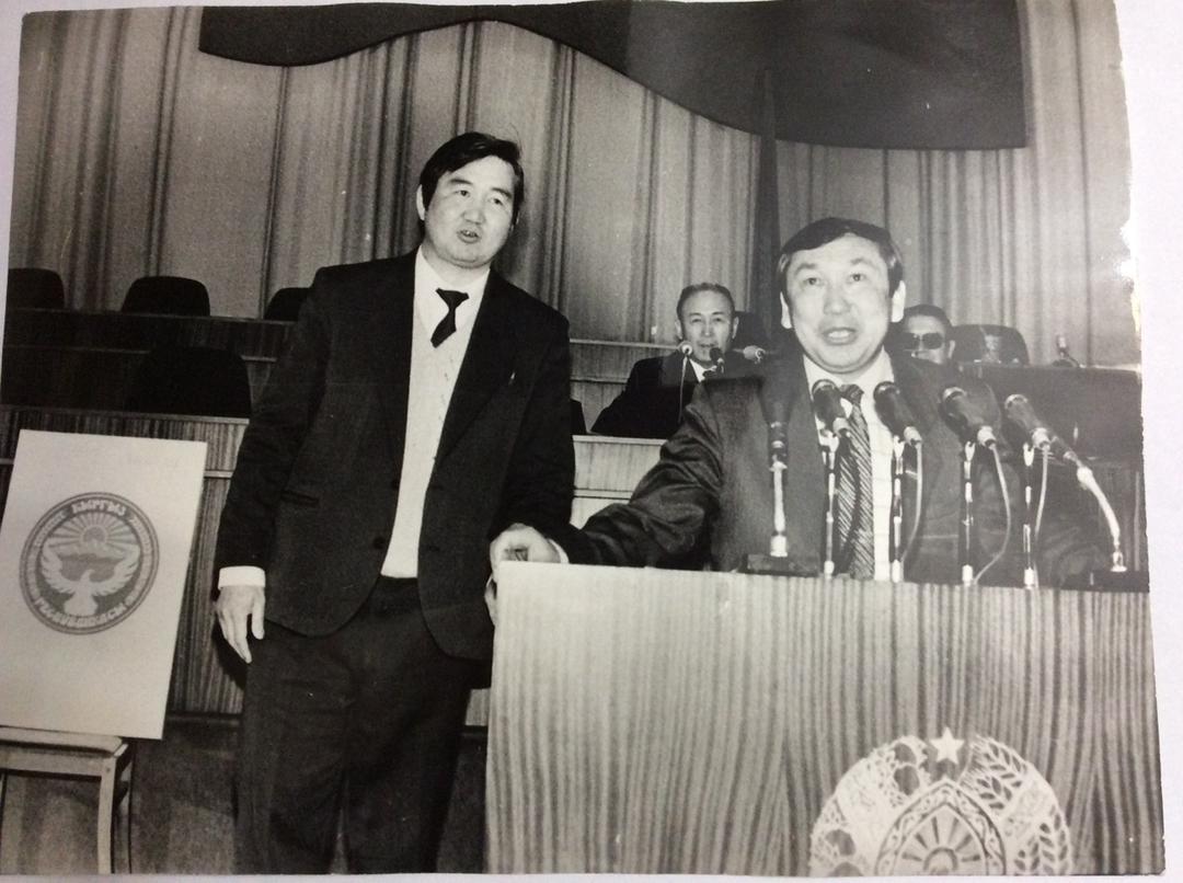 Их сотрудничество началось ещё в 1992 году при разработке символики МВД. Позже, уже будучи депутатом «Легендарного парламента», Садырбек Дубанаев предложил Асейину Абдраеву принять участие в конкурсе на создание государственной символики. Несмотря на сомнения, художник согласился, и работа над гербом заняла почти два года.