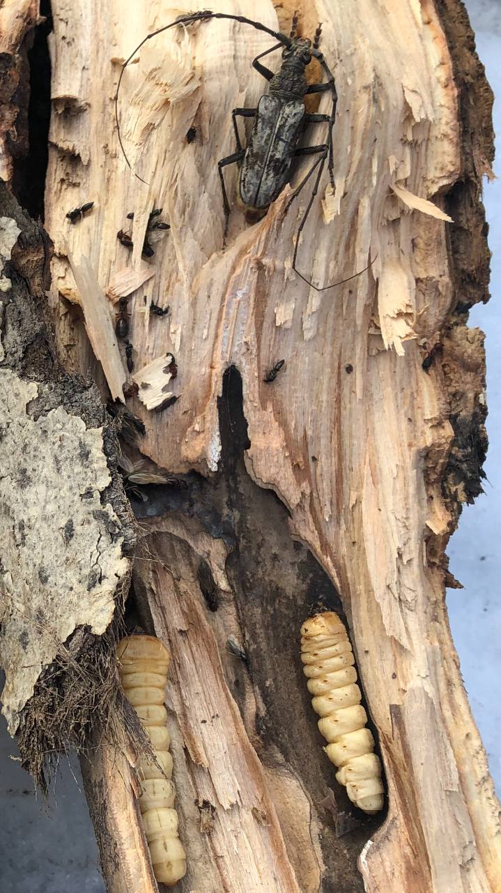Горожанин по имени Шухрат советует срочно белить деревья известью с добавлением в нее препаратов из ветаптек. Он отметил, что такая картина наблюдается по всему городу. Жуки уничтожают карагач, черный тополь и другие мягкие породы деревьев. Фотография, на которой запечатлены жуки и личинки, была снята на проспекте Дэн Сяопина. Это ветка серебристого тополя, пораженная жуком-короедом и его личинками, которую спилили. Ждем комментариев "Бишкекзеленхоза".