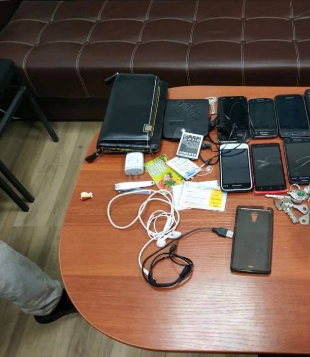При досмотре у мужчины были обнаружены следующие вещи: 8 телефонов серебряные изделия (цепочка, сережки).