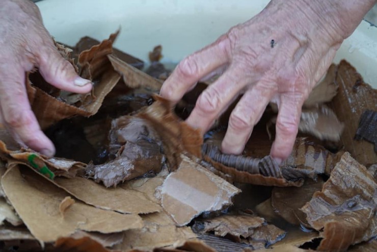 Чтобы сэкономить подорожавший из-за засухи корм, небольшие хозяйства замачивают картон в воде, а затем мягкий картон перемешивают с отрубями и отходами.