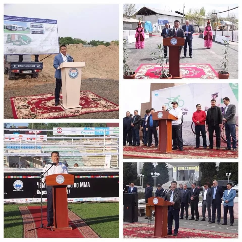 На красном ковре выступал и премьер-министр Сооронбай Жээнбеков — это было во время открытия моста через реку Ак-Буура в Оше.